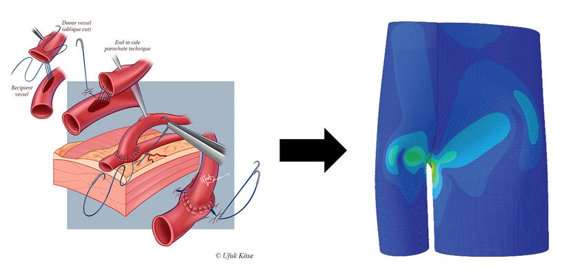 In my research as a grad student, I have also utilized continuum mechanics and finite element simulations to model stress focusing and thin sheet instabilities that spontaneously occur as a result of surgical procedures that deform native organ geometry. Specifically, I model anastomoses on gastrointestinal and vascular channels through the perspective of applied physics, elasticity, and geometry.